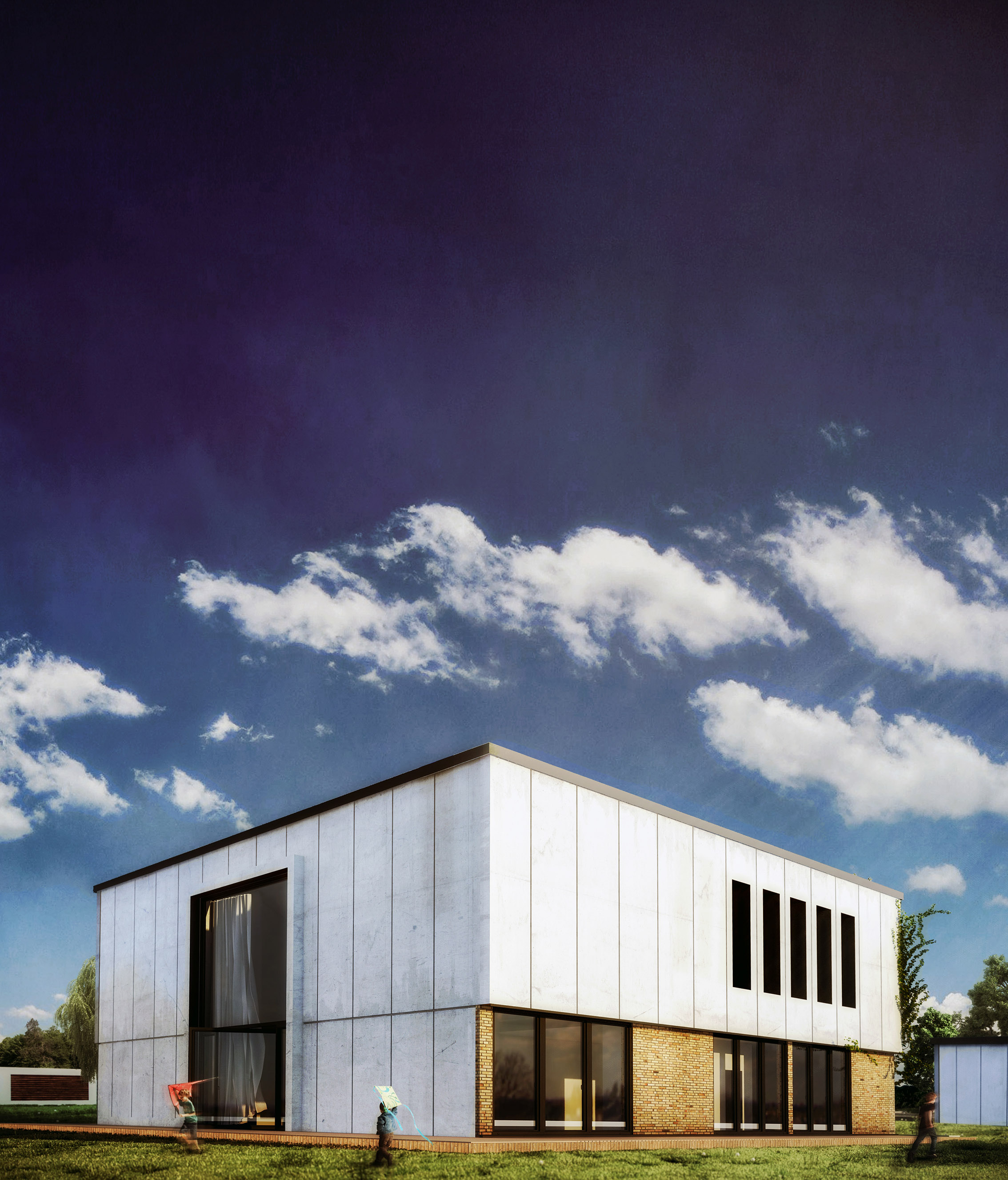 Dom zaprojektowany z myślą o czteroosobowej rodzinie (dwa + dwa). Dla osób, które cenią sobie prywatność i intymność, a zarazem odczuwają potrzebę ciągłego kontaktu z naturą i wiejskim otoczeniem.